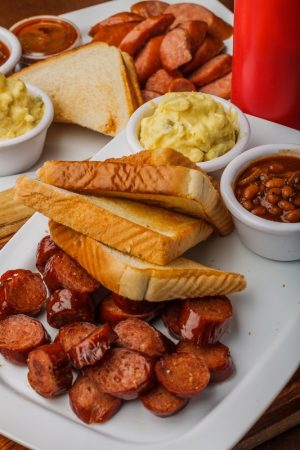 | Side Options | Baked Potato, Beans, Coleslaw, Corn, Cornbread, Fries, Hushpuppies, New Potatoes, Potato Salad, Side Salad, Sweet Potato |