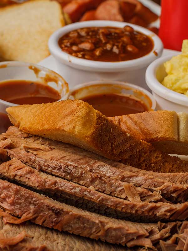 Baked Potato (+$1.24), Beans, Coleslaw, Corn, Cornbread, Fries, Hushpuppies, New Potatoes, Potato Salad, Side Salad (+$1.86), Sweet Potato (+$.63)