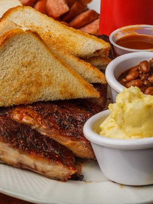 Baked Potato (+$1.24), Beans, Coleslaw, Corn, Cornbread, Fries, Hushpuppies, New Potatoes, Potato Salad, Side Salad (+$1.86), Sweet Potato (+$.63)