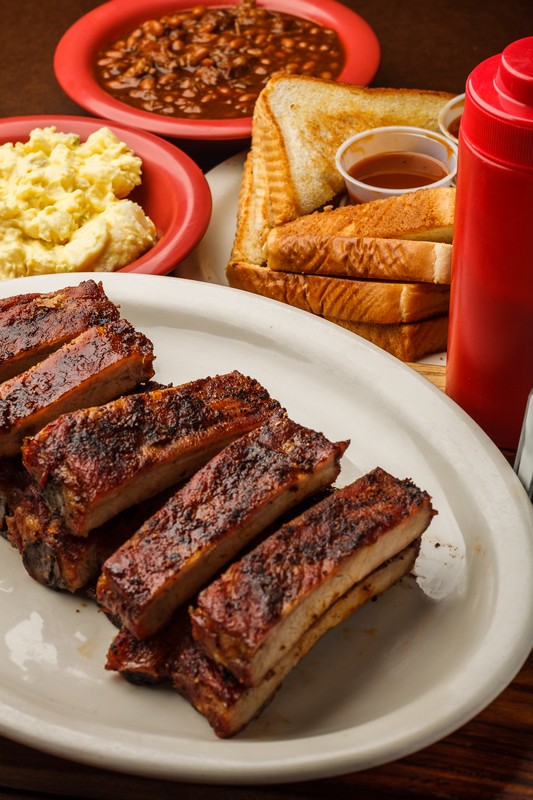 Baked Potato (+$1.24), Beans, Coleslaw, Corn, Cornbread, Fries, Hushpuppies, New Potatoes, Potato Salad, Side Salad (+$1.86), Sweet Potato (+$.63)