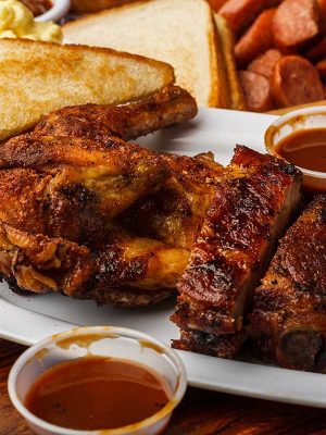 1 Full Slab of ribs served with 2 sides and 4 Texas toasts