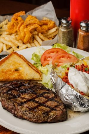 Baked Potato (+$1.24), Beans, Coleslaw, Corn, Cornbread, Fries, Hushpuppies, New Potatoes, Potato Salad, Side Salad (+$1.86), Sweet Potato (+$.63)