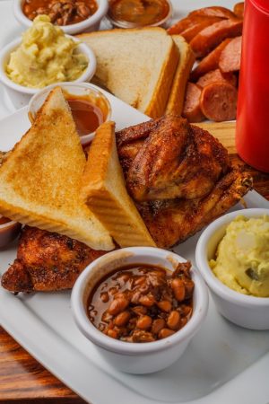 1 Full Slab of ribs served with 2 pint-sized sides and 4 Texas toasts