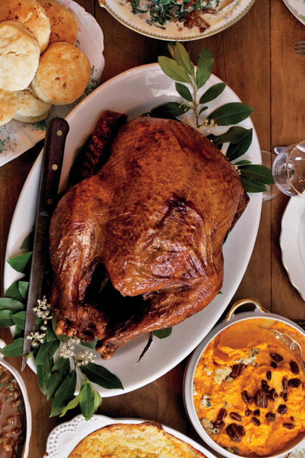 Choose one of the meat options. Get 2 quarts of cornbread dressing, a quart of turkey gravy, a pint of cranberry sauce, a dozen dinner rolls, and your choice of a pecan or pumpkin pie.